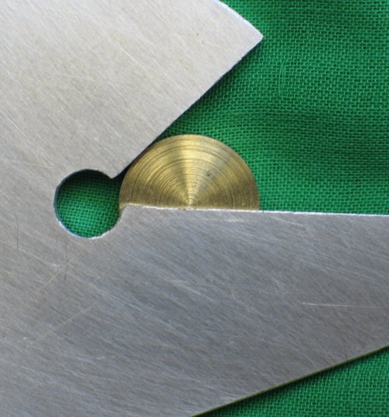 between 1/2 and 3 inches with the large size. It is very accurate, and easy to use. Hold against the open angle on back and using a fine point scribe, scribe a line across the part. Turn the part 90 degrees and scribe again. The scribe marks intersect at the exact center of the round piece. |