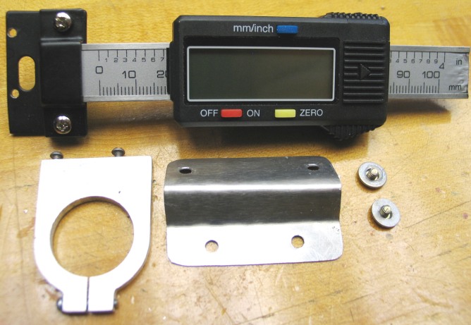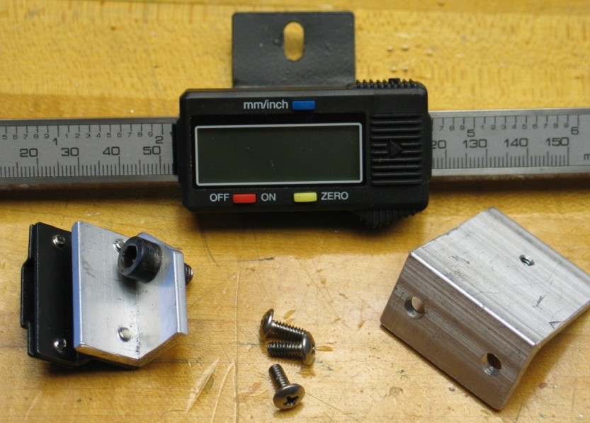 These are the parts needed to install a carriage position DRO The two angle mount brackets are of 3/32 aluminum. |