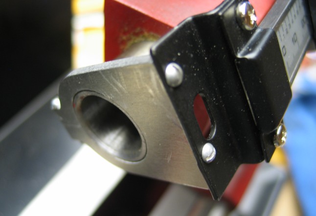 The CNC cut bracket is drilled and tapped 2-56 for the clamping screw and the mounting screws to the end plate of the DRO. |