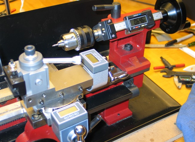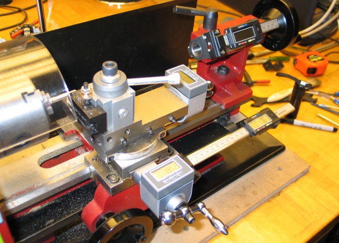 The DRO's make it very easy to keep track of where and how deep you are cutting on your stock. The Compound DRO's are from The Little Machine Shop. Pricey, about $150 for the pair |